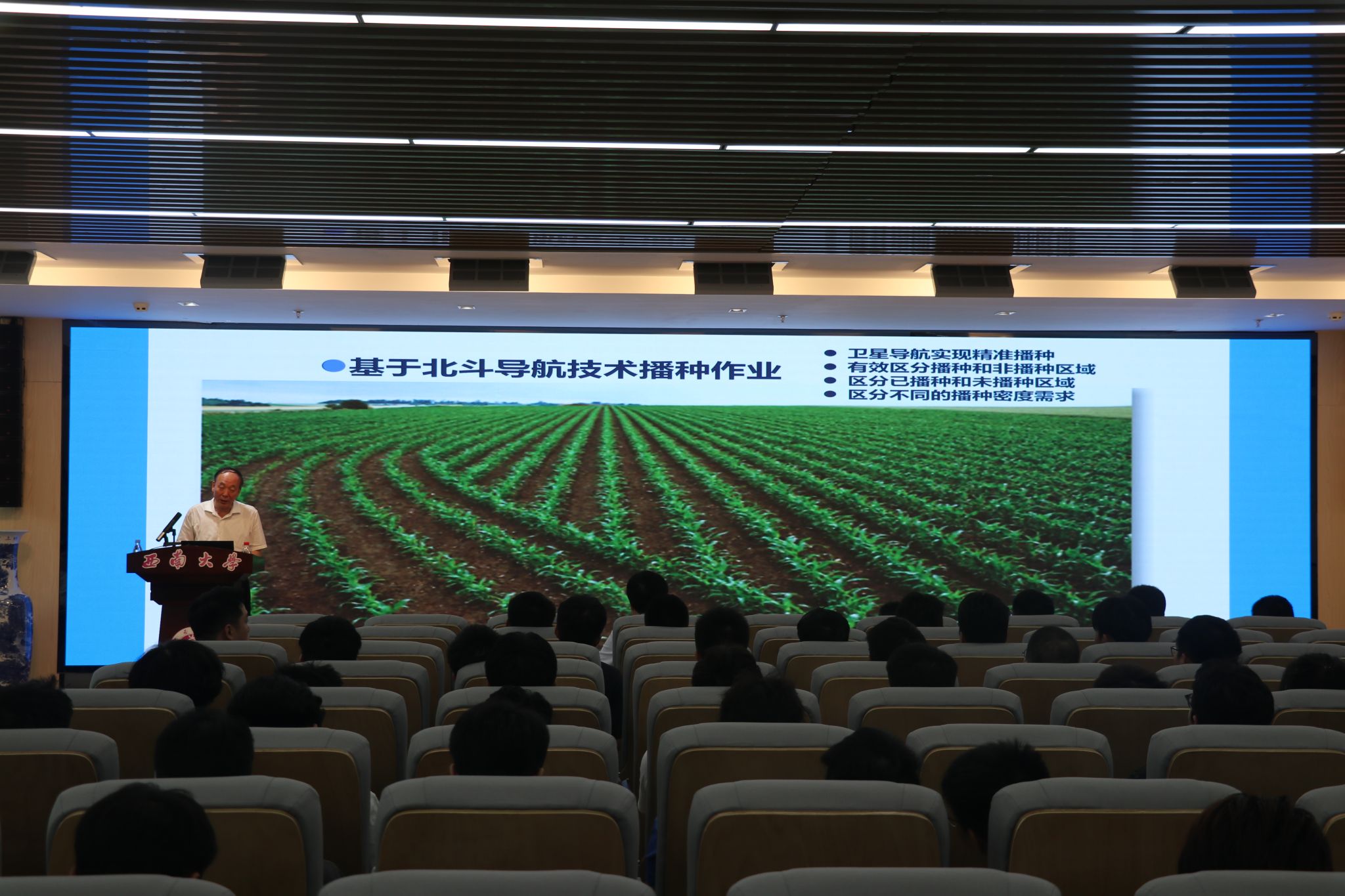 讲座伊始,武好明副书记对赵春江院士的到来表示热烈欢迎。赵院士以《对发展智慧农业技术与装备的思考》为主题,深刻阐述了智慧农业的内涵与当前发展现状,并重点介绍了团队所研究的无人机精准追肥技术。随后,他进一步阐述了智能农机设备在智能农场、智能园艺、植物工厂、畜禽养殖、鱼类养殖及智慧果园等多种生产环境下的应用情况和丘陵山地领域技术的新发展。他强调,我国要建设成农业强国,最重要的是提升科技装备水平。