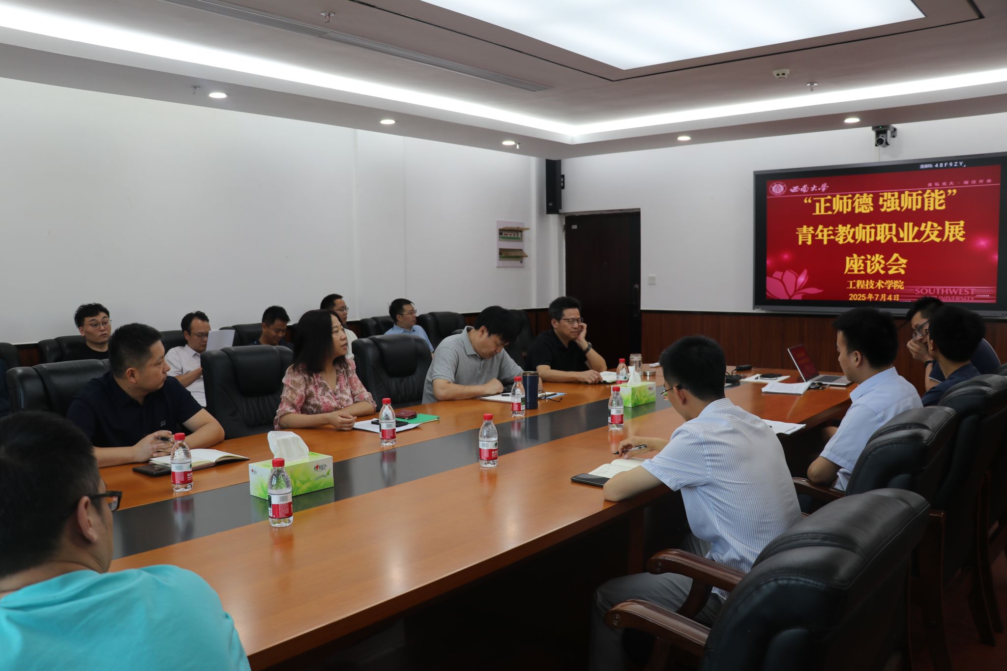 为持续推进深入贯彻中央八项规定精神学习教育走深走深,加强青年教师师德师风建设,提升青年教师教学科研能力,7月4日下午,学院以正师德 强师能为主题在新工科大楼A座503会议室召开了青年教师职业发展座谈会。学院全体党政领导、党政办和教学办相关人员及青年教师参会。会议由学院党委书记古文海主持。