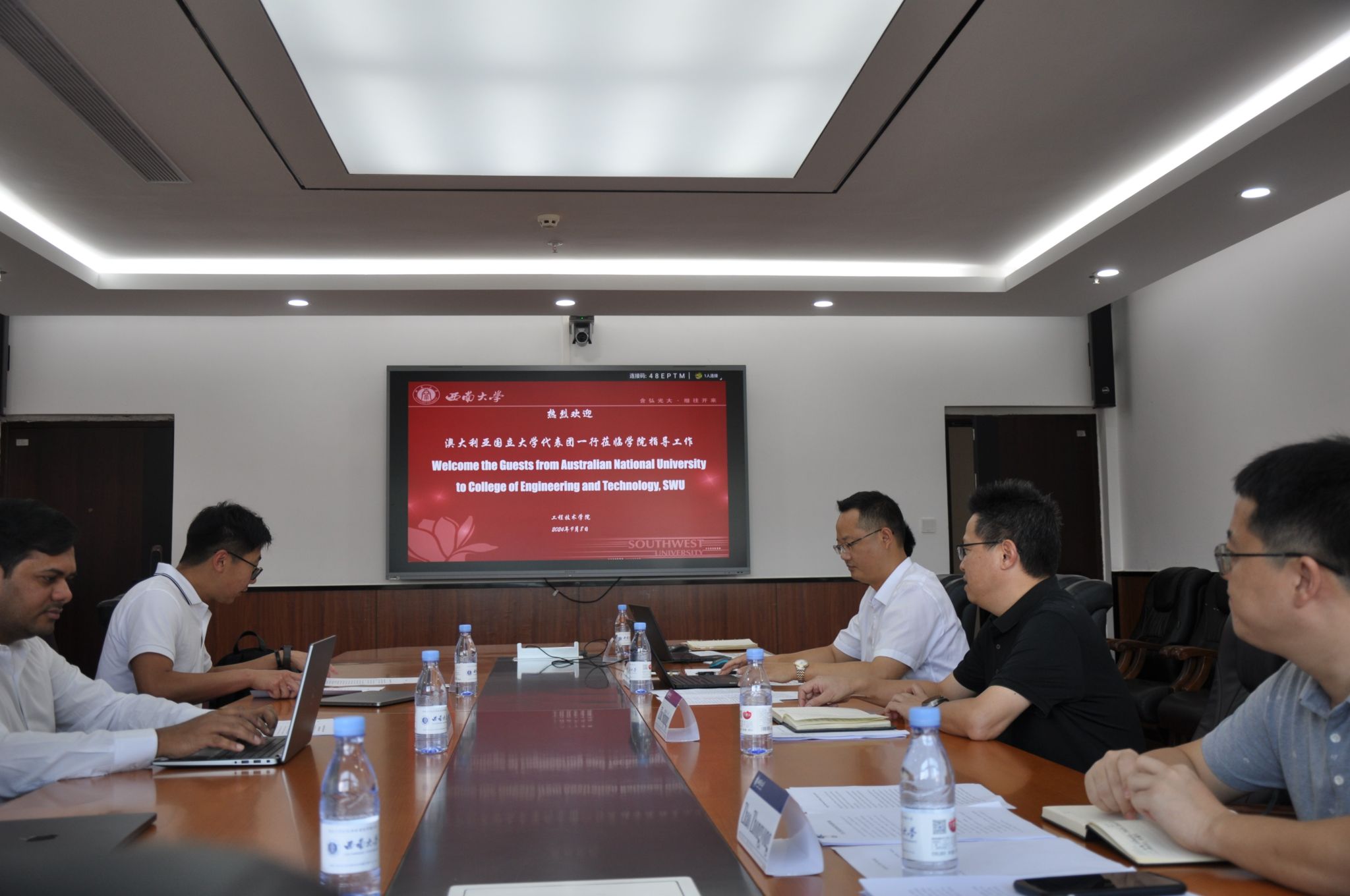 Arthur Xu副主任感谢学院对两校合作办学的全力支持,对学院的办学能力水平表示了充分肯定,并简要介绍了澳大利亚国立大学的办学情况。Siva Karuturi教授进一步介绍了澳大利亚国立大学工程学院的教学科研情况。