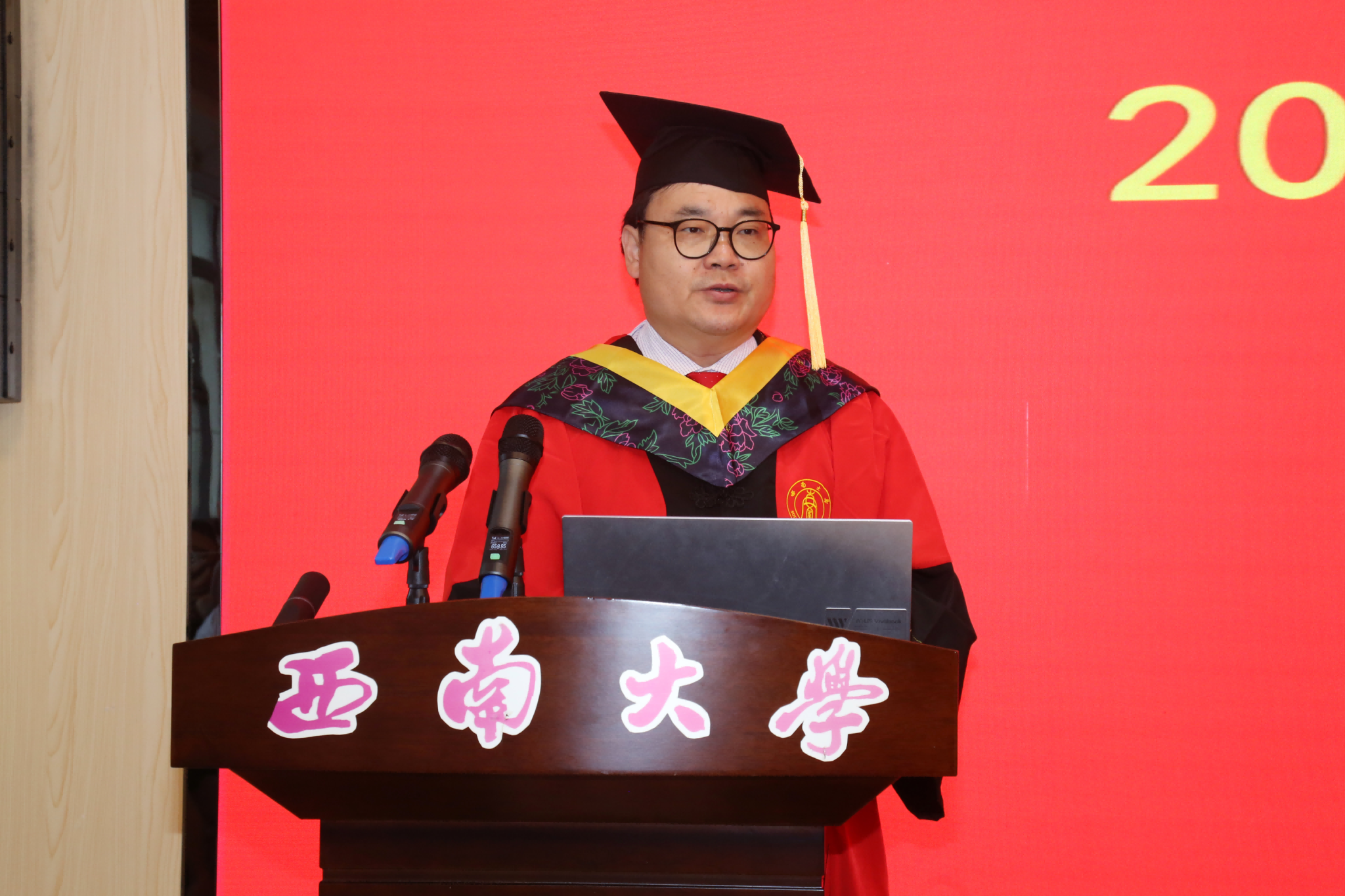 党委书记古文海书记首先宣读了西南大学2024年准予毕业决定和2024年优秀毕业生表彰文件,代表学院向全体毕业生们表示了热烈的祝贺。