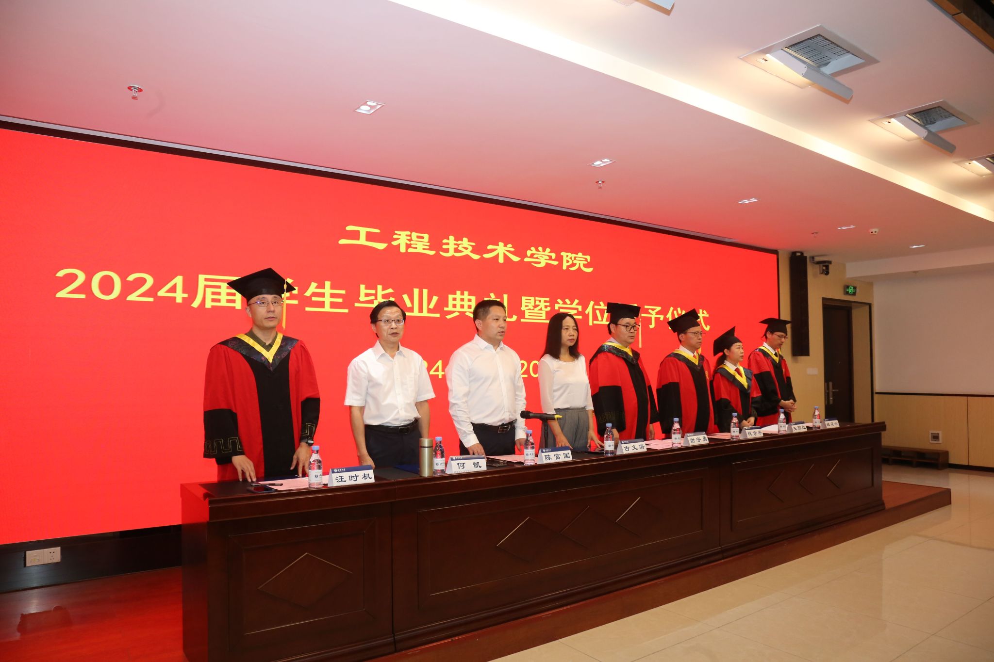 毕业典礼在雄壮的国歌声中拉开序幕。