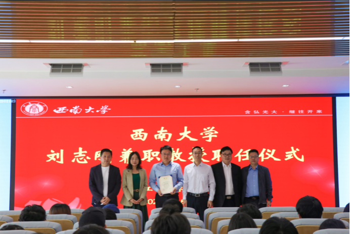 3月28日下午,在工科大楼A座 511会议室举行了西南大学刘志刚兼职教授聘任仪式。经学校批准,决定聘请西南交通大学刘志刚教授作为学校兼职教授,定点在PA视讯集团工作。学校党委常委、副校长韩旭东出席仪式,工程技术学院全体班子成员、师生代表参加了仪式。聘任仪式由工程技术学院党委书记古文海主持。