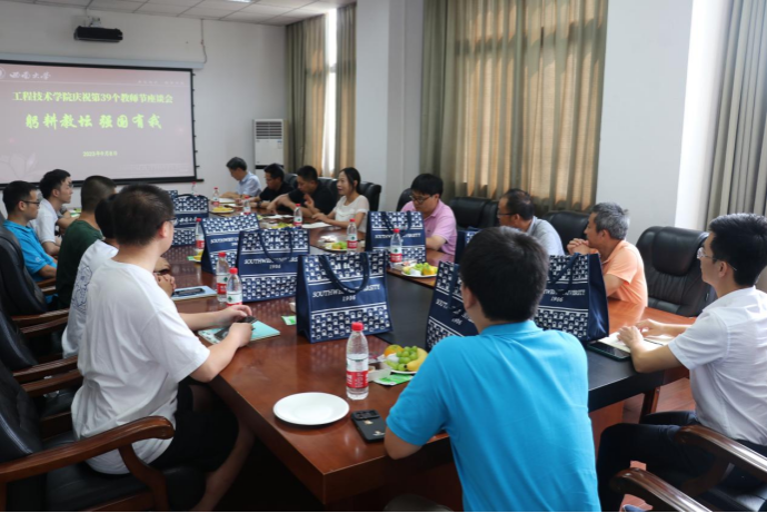 座谈会上,古文海代表学院向全体参会教师致以节日祝福,学院老教师代表蒋猛,青年教师代表冀杰、蔡维,结合个人从教、工作经历,围绕教学工作、科学研究、学生教育引导等方面进行了细致的分享。学院院长谢守勇,副书记陈富国,副院长祝诗平、李云伍对为一直以来为学院发展奋力拼搏的老师们表示衷心的感谢并对新教师们提出希望,要始终牢记为党育人、为国育才的初心使命。贯彻落实“立德树人”根本任务,切实担负起教书育人的职责;要不断夯实从教基础、增强从教本领。注重教育教学方式,激发学生科研兴趣和创新思维,努力将“新工科”理念与实践融入教育教学全过程;要在学术上有更高追求,在主动担当主动落实上有更高目标。结合自身研究基础积极探索加快融入学院团队,不断提升科研能力,加强对外交流,促进科研成果落地,真正做到服务地方经济建设。