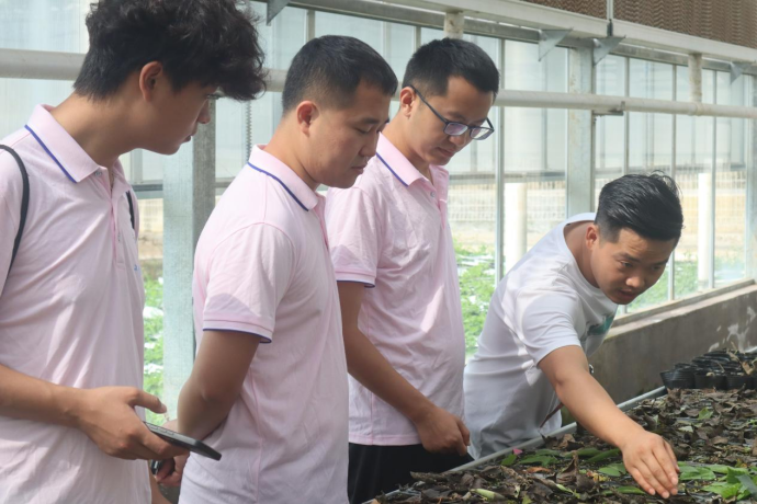 (图为实践团成员学习观察示范技术“微穗快繁”)