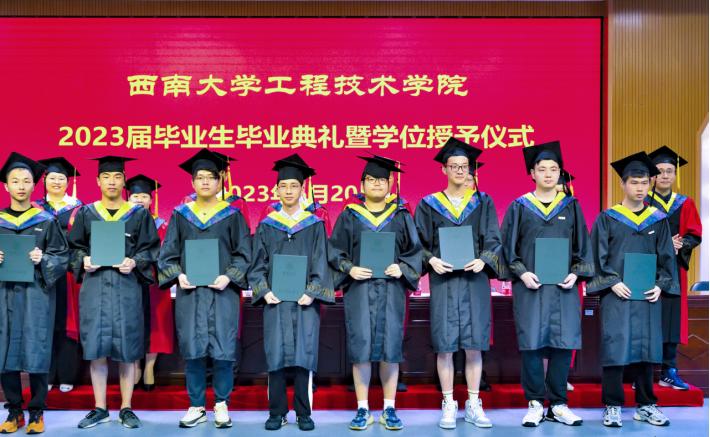 党委书记古文海书记宣读了西南大学关于表彰2023年优秀毕业生文件、西南大学准予2023届学生毕业及学位授予文件,鼓励毕业生们带着西南大学的精神,点亮灿烂星空,拼得精彩的人生。主席台就座领导和老师为受表彰的毕业生颁发荣誉证书,并为毕业生代表颁发毕业证书。