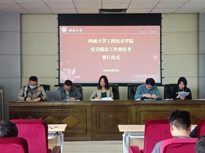 4月28日下午,学院召开了2023年安全稳定专题工作会议,学院党委书记古文海布置了安全稳定工作并进行了意识形态安全教育,组织全体教职工共同学习了学校安全稳定相关文件。古文海要求老师要提高政治站位,充分认识安全稳定工作的重要性,切实履行安全监管职责,严格按照管理规定开展工作。会议上古文海代表学院分别与教职工代表签订了《PA视讯集团安全稳定工作责任书》。