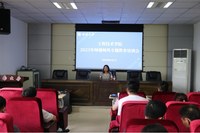 6月2日下午,学院党委召开2023年师德师风专题教育培训会,邀请学校纪委副书记、党委巡察办主任刘勇作专题报告,以学习贯彻习近平新时代中国特色社会主义思想主题教育为契机,大力推进师德师风建设,学院党委书记古文海主持会议,全体教职工参会。