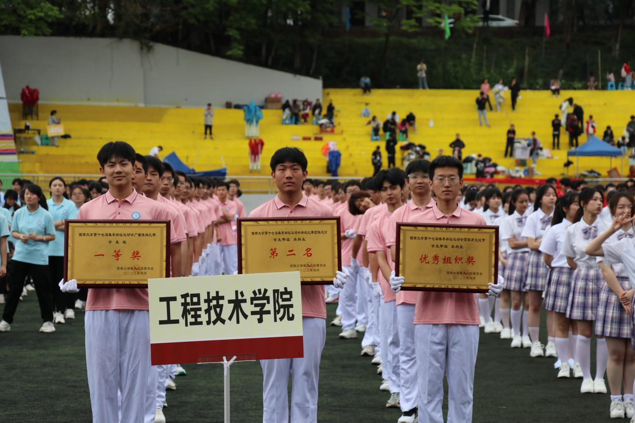 为促进校园体育文化的发展,增强学生体质素质,提高体育竞技水平,激发学生的运动热情和体育精神。学校于2023年4月20日至4月22日成功举办第十七届春季田径运动会暨体育文化节。我院代表团在比赛中斗志昂扬、奋勇拼搏,最终荣获田径比赛甲组团体总分第二名、广播体操一等奖和优秀组织奖的好成绩。