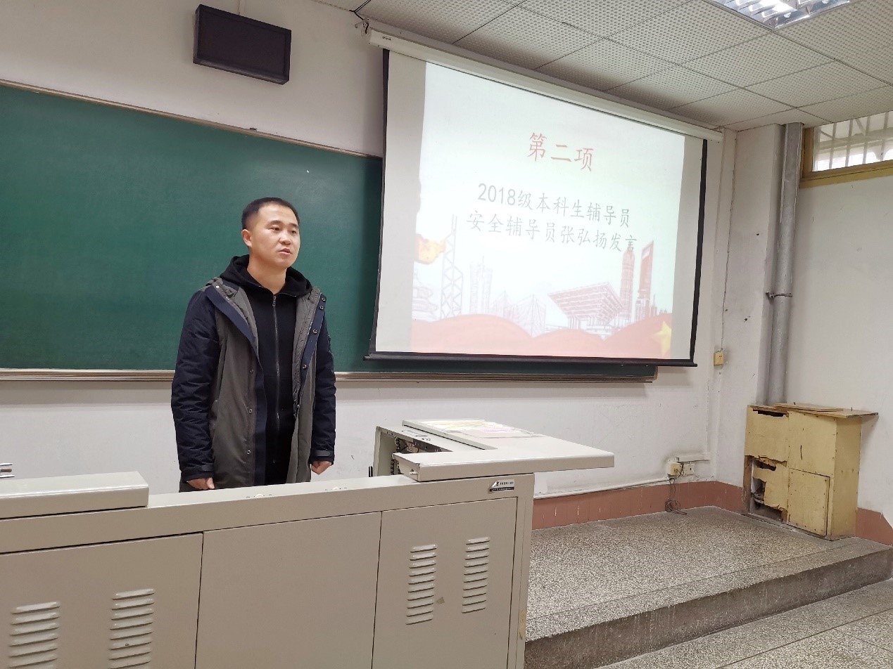 随后,2018级本科生辅导员兼安全辅导员张弘扬以“少数民族学生安全教育”为切入点,结合学校近期发生的详实案例,旨在提高同学们对电信诈骗、校园贷、新型传销的警惕性,做到合理消费,量力而行。同时希望同学们规范自己的行为,遵守大学生行为规范准则,在4年大学生涯中活出风采,过得充实而愉快!